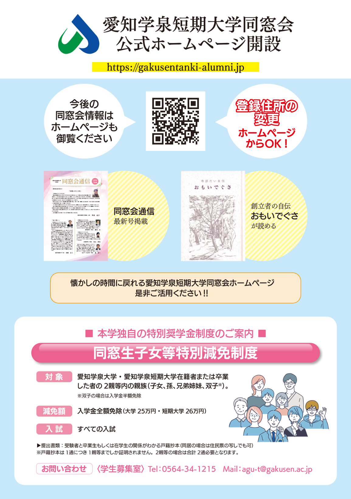 ご不明な点がありましたら、愛知学泉短期大学学生募集室までおたずねください。 ℡0564-34-1215